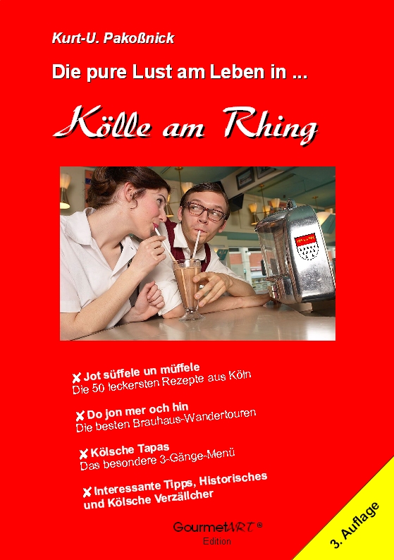 Amüsant op kölsche Art, aber hochdeutsch, beschreibt er die kölsche Brauhauskultur, alle Kölschmarken, kölsche Brauhaus-Wanderwege u.v.m. wie z. B. die 50 leckersten rheinischen Rezepte inklusive Kölsche Tapas.